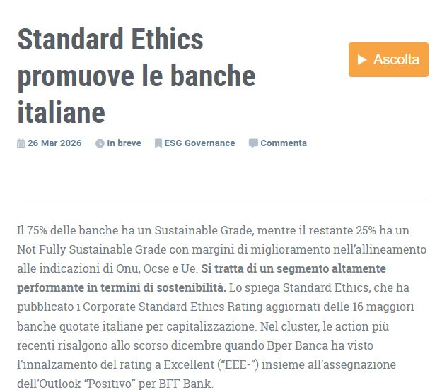 📌 Standard Ethics promuove le #banche italiane