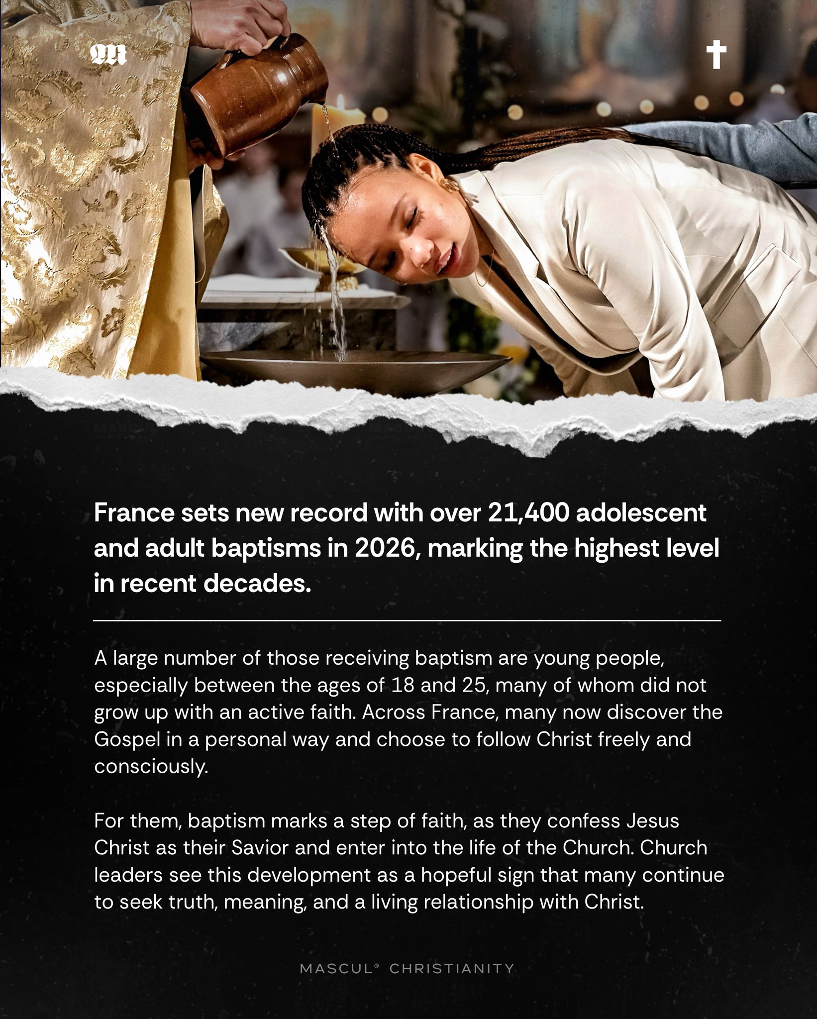France has seen a notable rise in baptisms among adolescents and adults, with more than 21,400, according to data published by the French bishops. 🙏🏼
