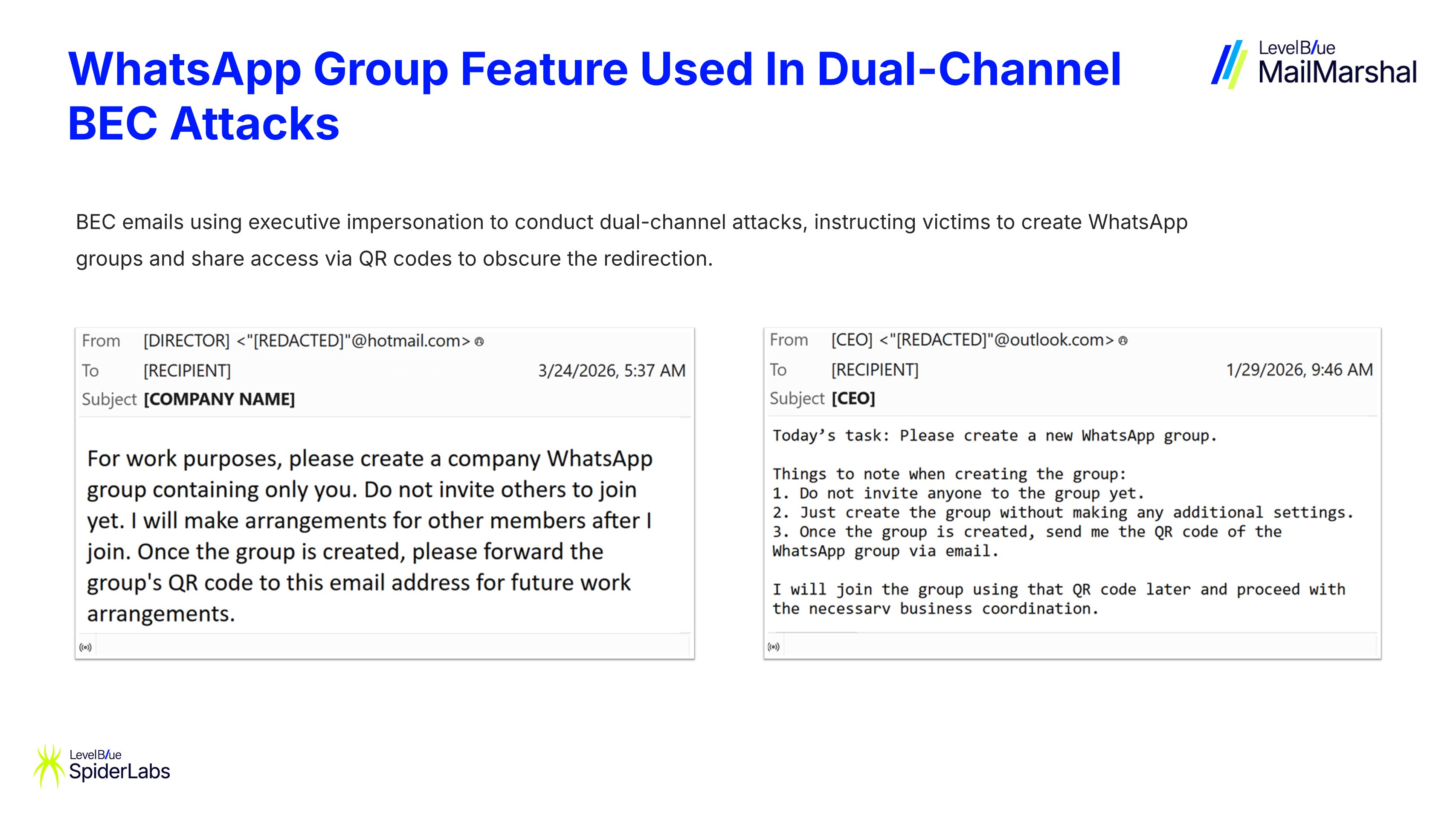 📨 #BEC Alert: We've identified a wave of Dual-Channel BEC attack designed to shift the conversation from corporate email to WhatsApp groups. Unlike in traditional campaigns that request for the victim's number, fraudsters instruct them to create a single-member group and share
