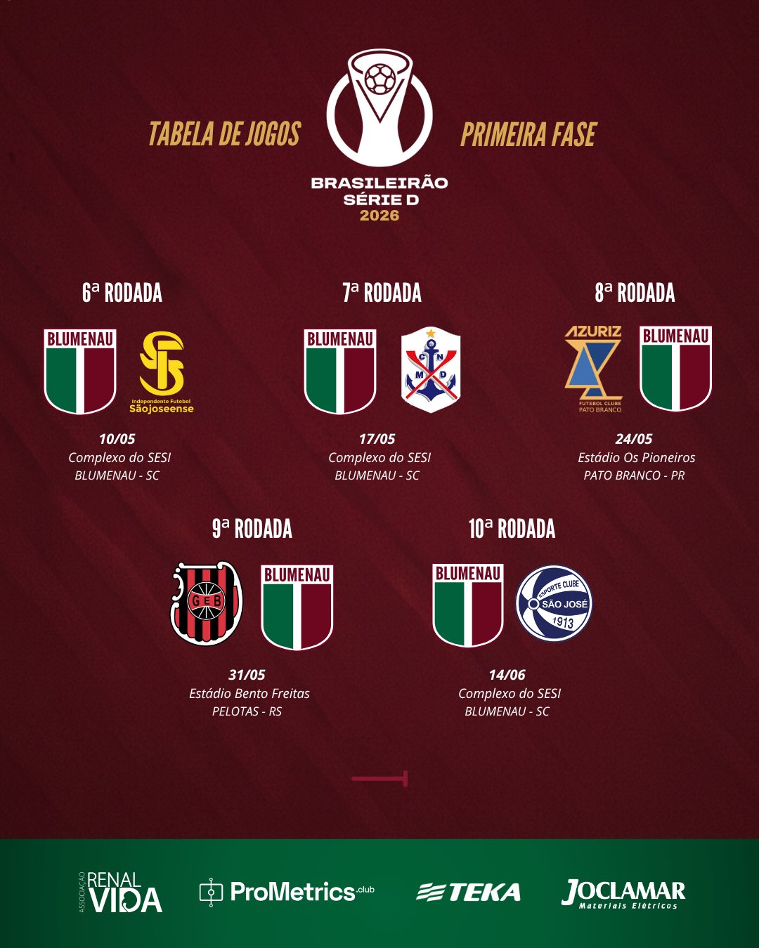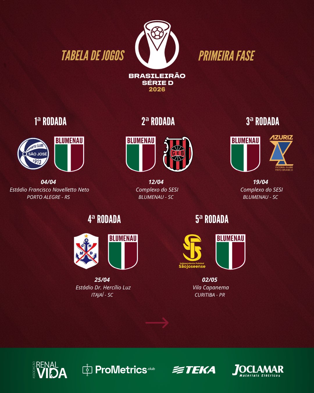 A estreia será no sábado, dia 4 de abril, contra o São José, em Porto Alegre.