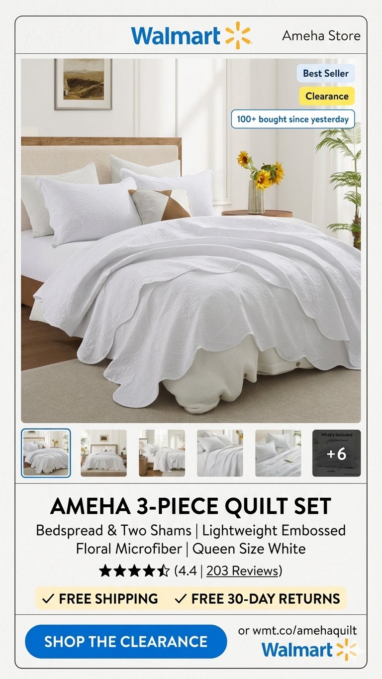 This Ameha 3-Piece Queen Quilt Set is on clearance right now!