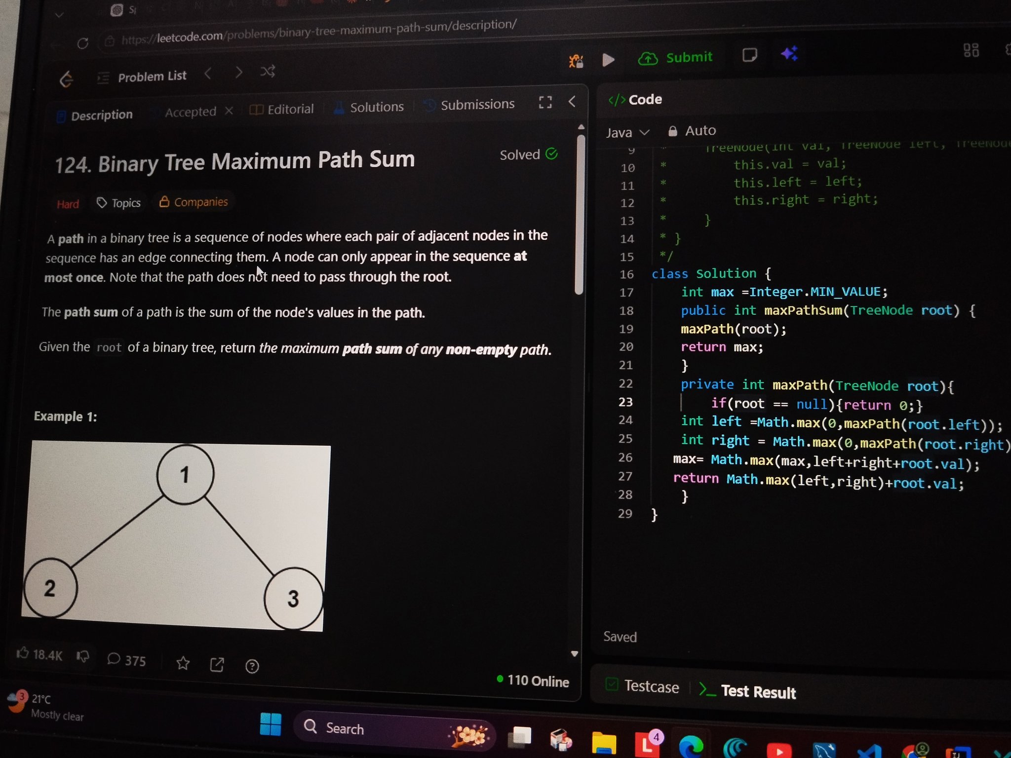 ✔️ Calculated Diameter of Binary Tree