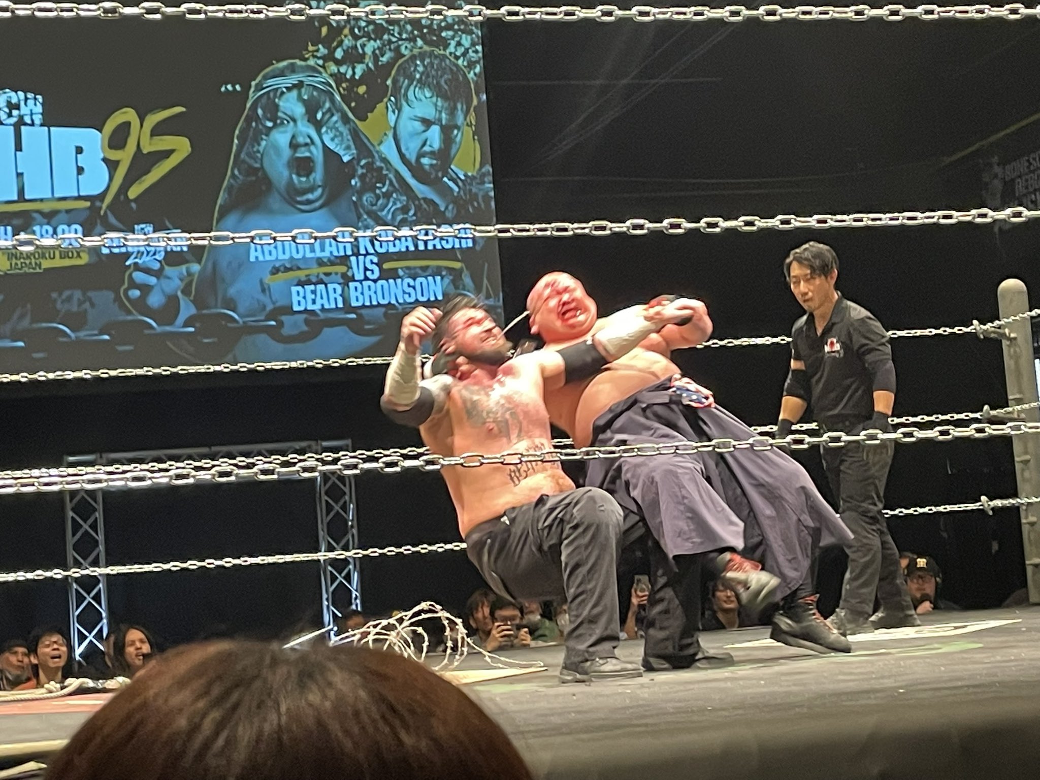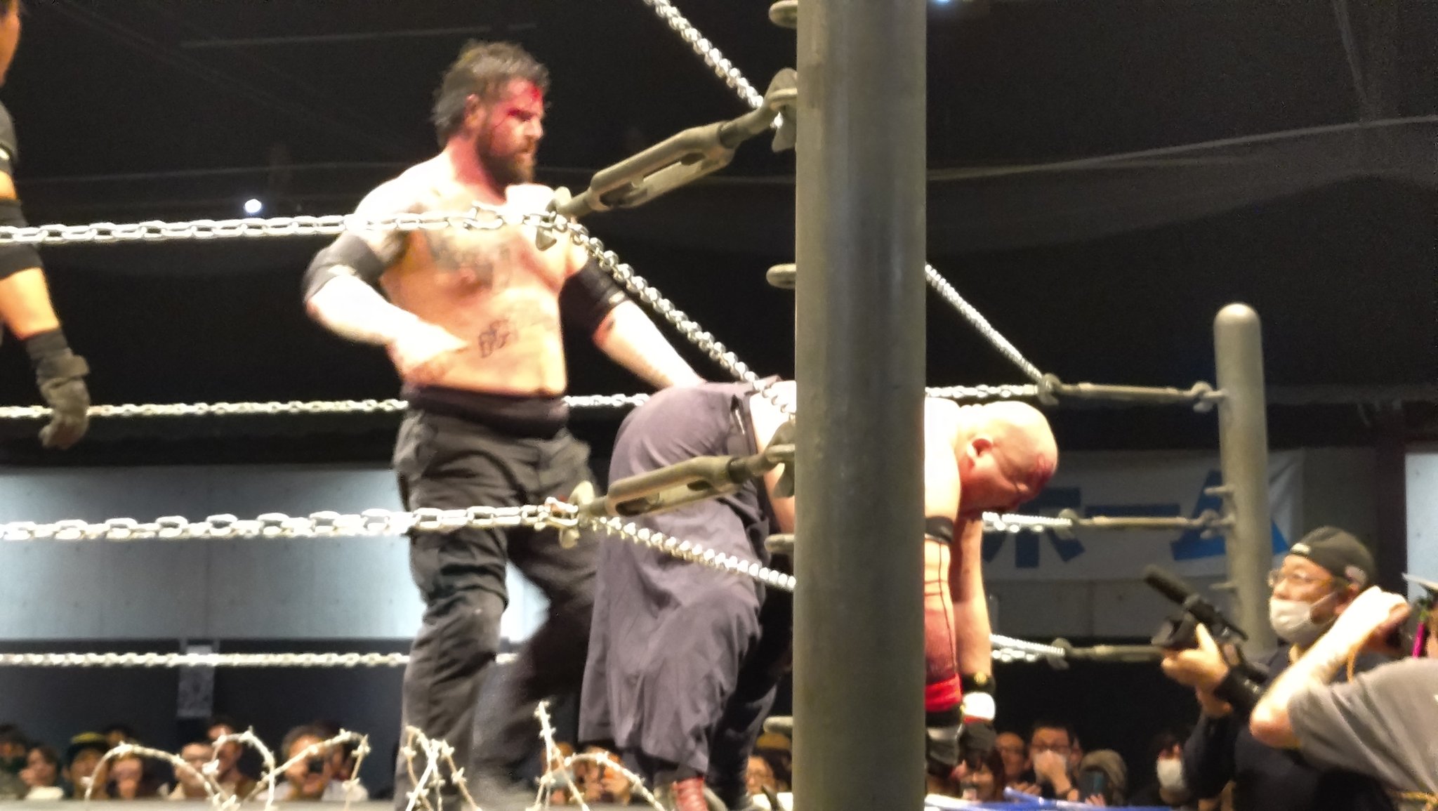 🩸セミファイナル 有刺鉄線ボードタッグデスマッチ