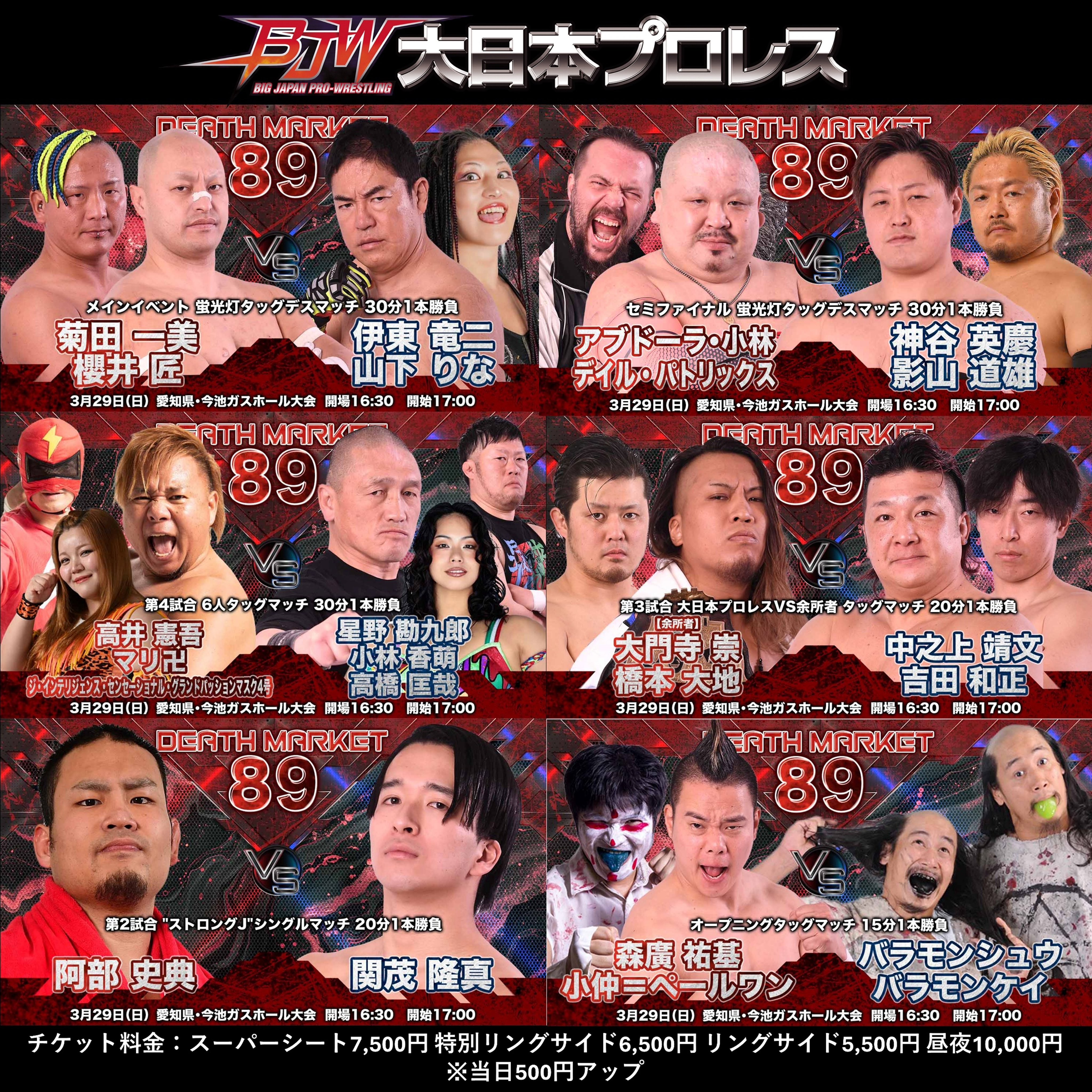 佐藤孝亮@pw_sato 青木優也@aokiyuuya_pw 森廣祐基@morihirobjw 🆚【栃木プロレス】永尾颯樹@ZERO1SATSUKI 北村彰基@Kitamura_Shoki 星野良@zero1_ho