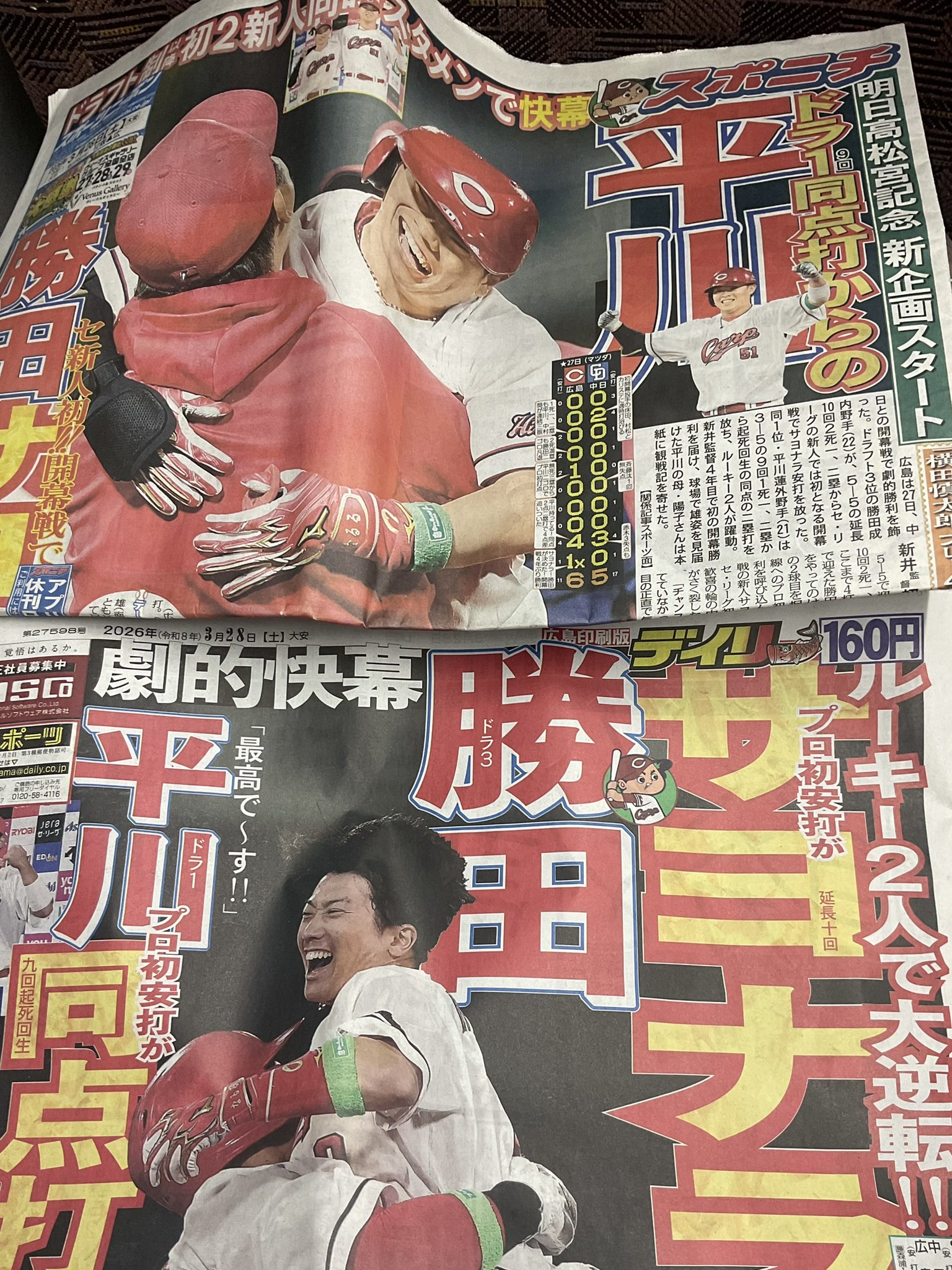 スーパー野菜人 @suraxiri · 1m 2試合ともギリギリなゲームだったね ここまでくると3タテの欲が出るな 新井カープ4年間で1番良いスタートダッシュ🏃➡️ #carp 安芸の者がゆく@カープ情報ブログ @carp_akinomono · 3h 【カープ戦評】ファビアン、自らのミスを取り返す決勝打。ターノック7回0封(2026年3月28日) akinomono.jp/e/carp-2026-ga… | | #carp #カープ #こいほー 15
