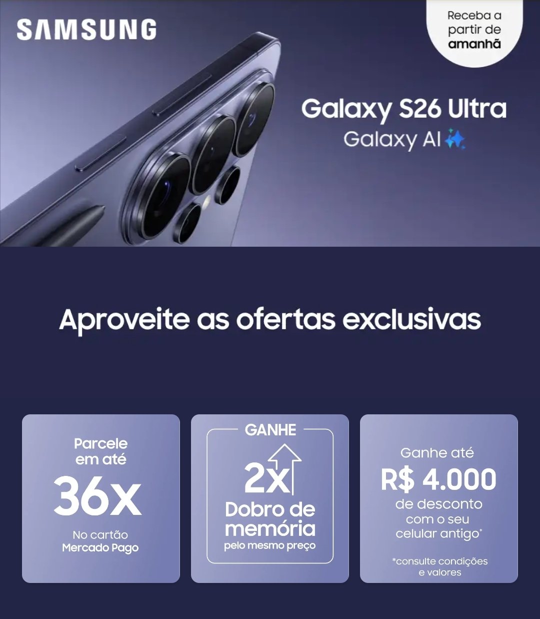 From mercadolivre.com.brCelular Samsung Galaxy S25 FE, Câmera Tripla Traseira de até 50MP, Câmera Frontal de 12MP, Processador poderoso Deca-Core (4nm), 128GB, 8GB de RAM, 8GB RAM Plus, Tela de 6.7" 1-120Hz, Nova Geração...