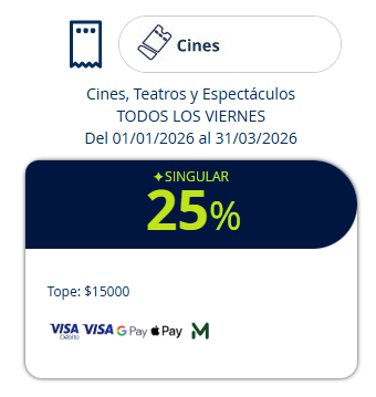 Sábados hasta 31/3: 30% en #Cines tope $20.000 con crédito #Macro #Selecta @MODO_Arg 🎥🍿