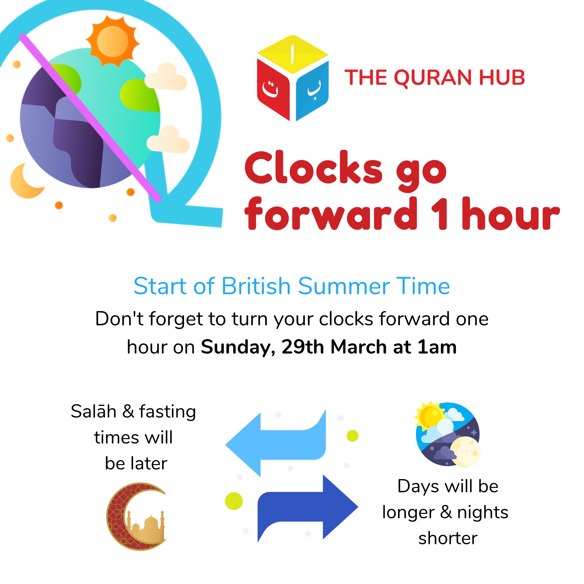 Don’t forget to adjust your clocks on Sunday, 29th March at 1am (BST begins).