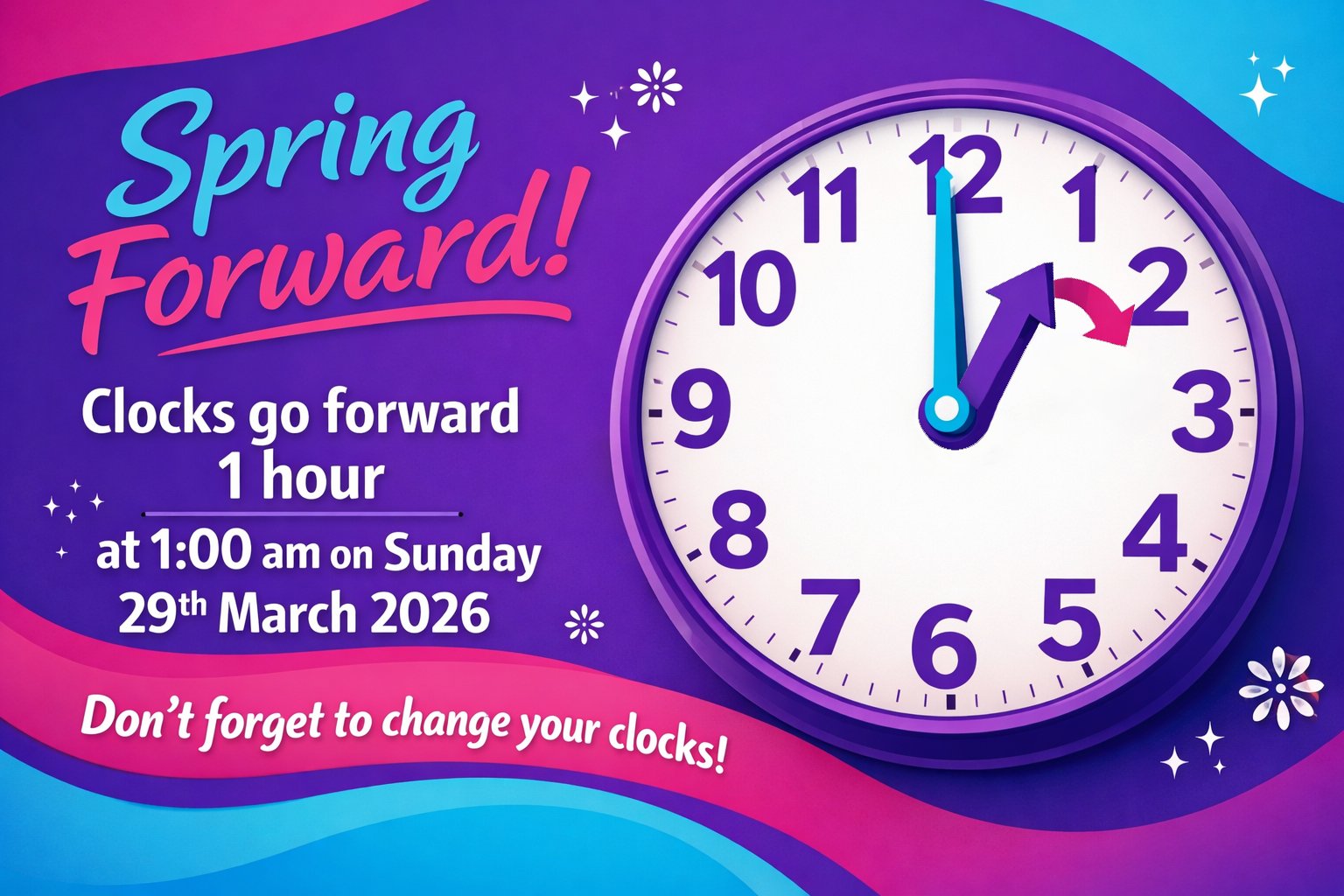 ⏰ Clocks go forward Saturday night (28th of March)!