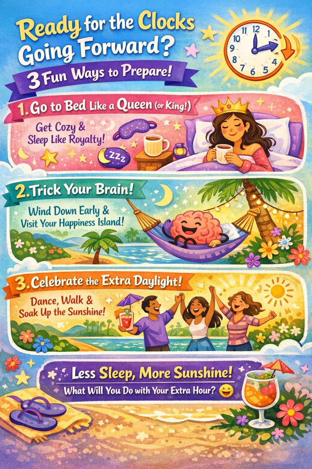 Clocks go ahead this Sunday, enjoy the extra sunshine (even if it costs an hour of sleep). 🌞✨