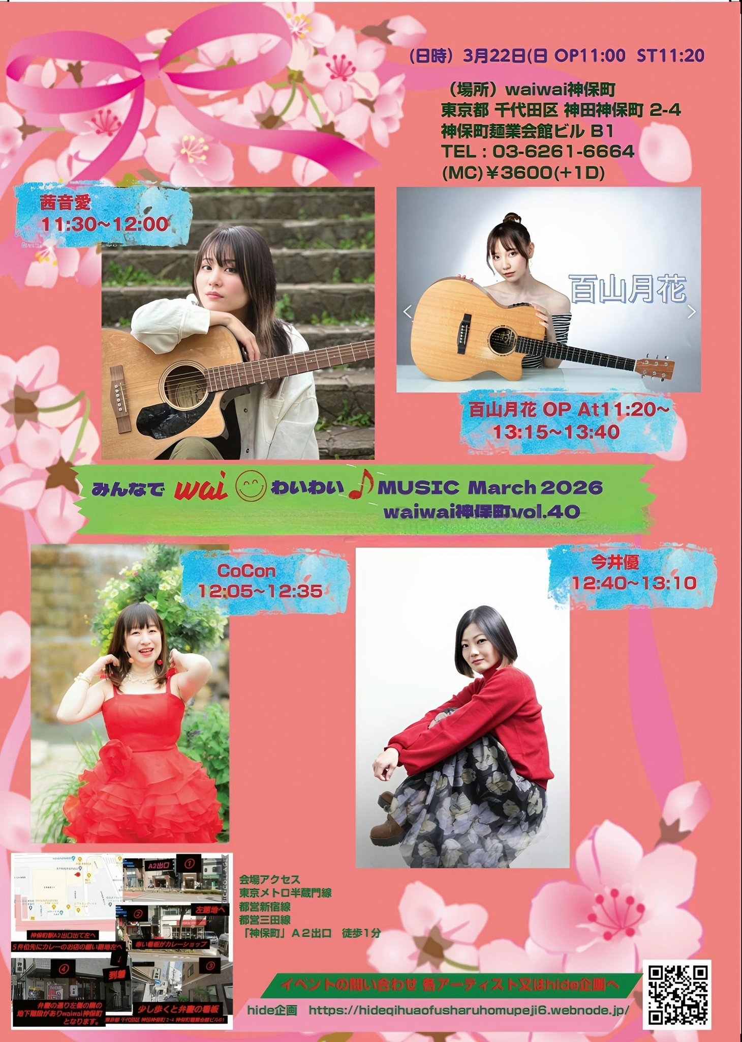 秀明 @lovelina_hide · Mar 18 次の主催LIVEは日曜日です! みんなでwaiwai Music March2026 waiwai神保町vol.40 (日時)3月22日(日) OP11:00 ST11:20 (場所)waiwai神保町 東京都 千代田区 神田神保町 2-4 神保町麺業会館ビル B1 (MC)¥3600(+1D) (出演者) #百山月花、#CoCon、#茜音愛、 #今井優 御来場お待ちしてます~🎶3 3 6 23 494