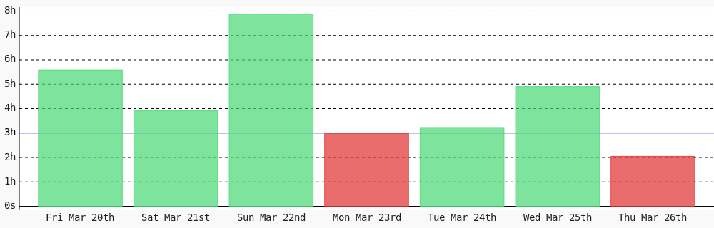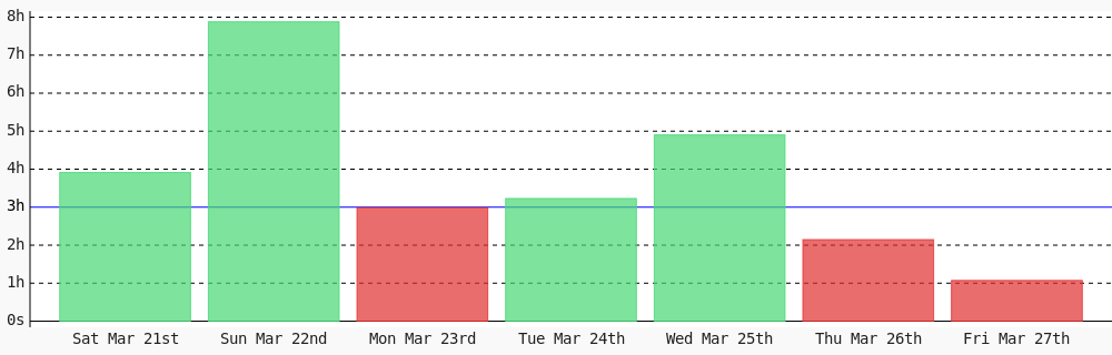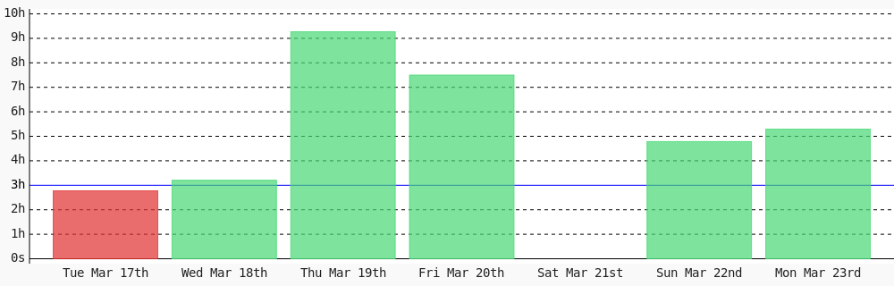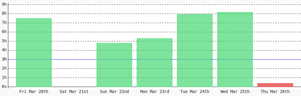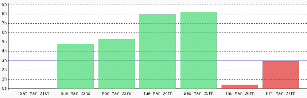 Viryl @Viryl3 · 3d Today I coded 3 hrs 12 mins towards my @WakaTime goal of coding 3 hrs per day ✔️ #WomenInTech #codegoal #devlife #programming wakatime.com/@viryl15
