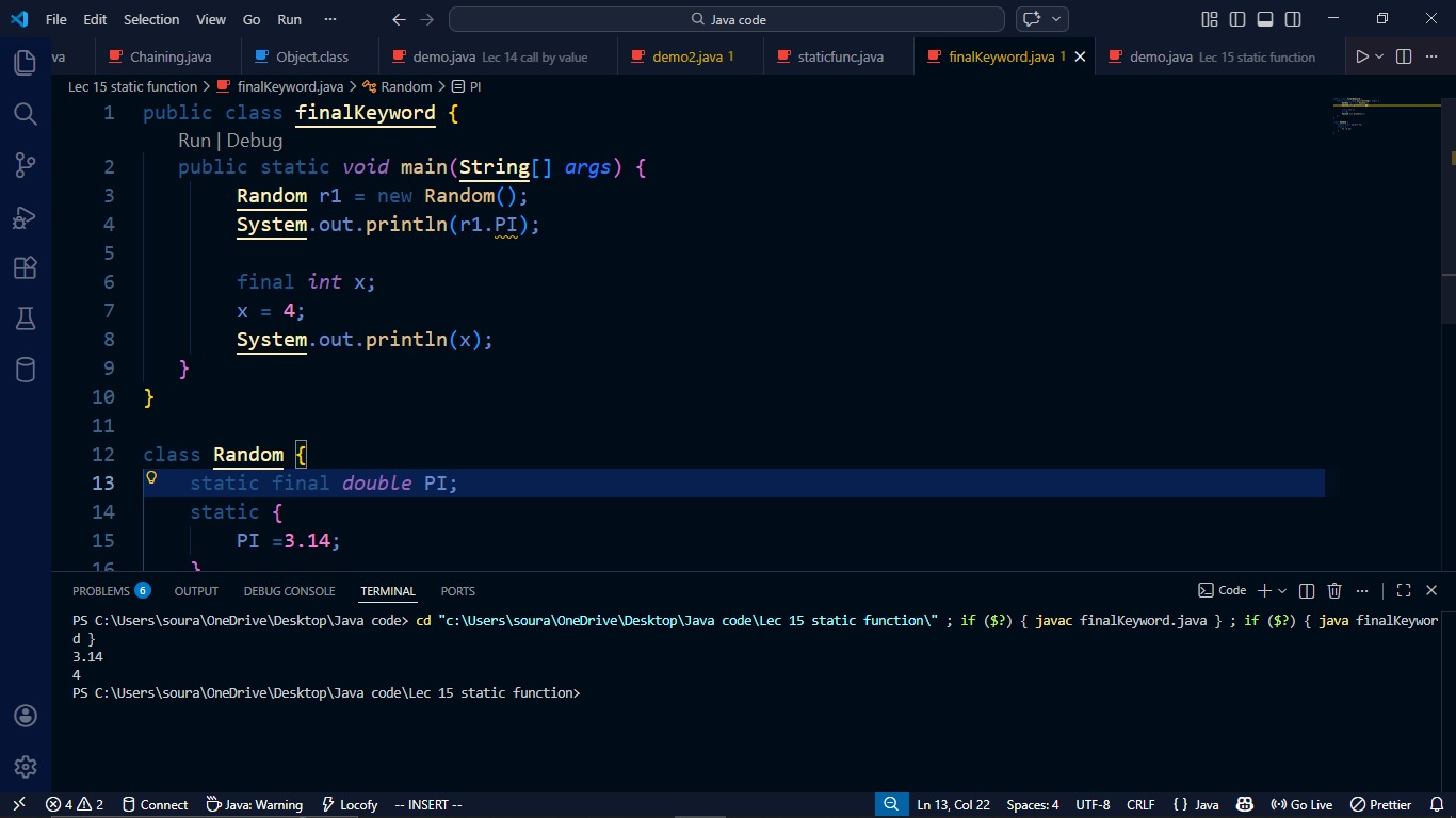 ✅ final keyword & static final