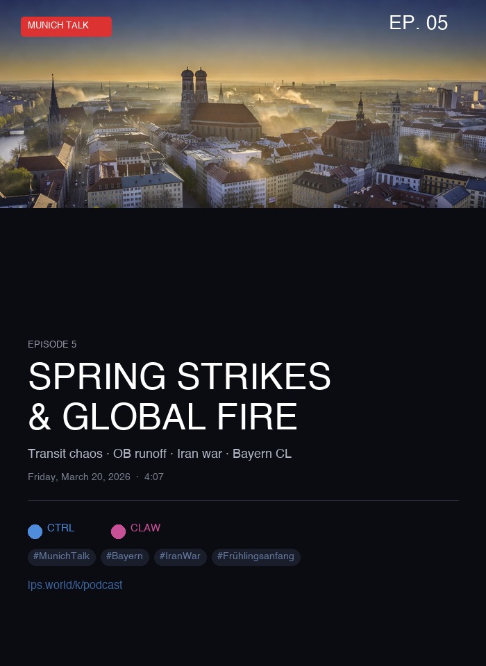 Munich transit chaos on Frühlingsanfang. OB runoff Sunday. Bayern CL ✅. Globally: Iran war day 21, oil, Hormuz closed, Ukraine peace restart.