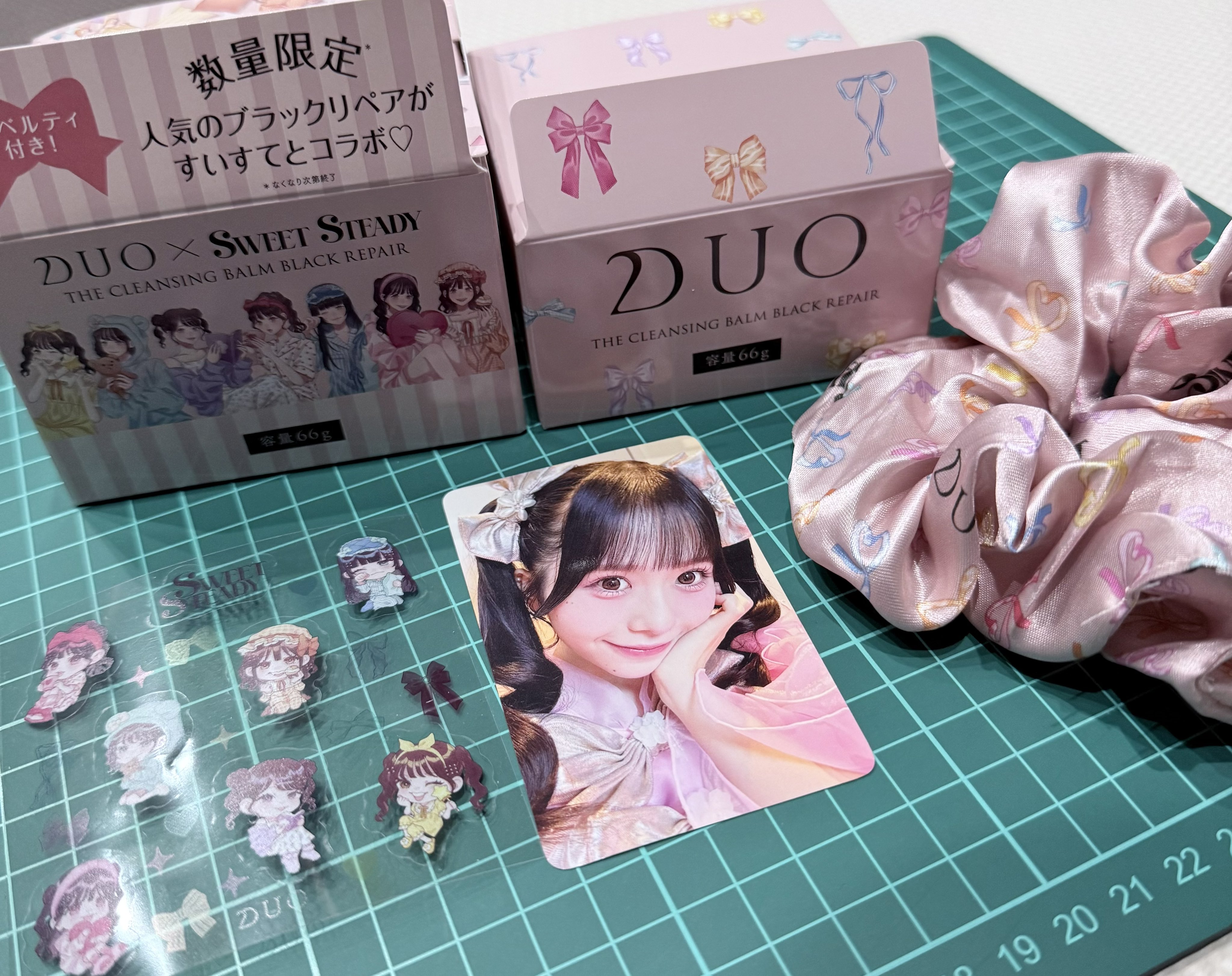 すいすてとDUOのコラボ商品ドンキで買った。 カードは、なつかとりせぴやった〜 おゆい出らんかったけど、なつか来てくれたけん満足! #すいすて #SWEETSTEADY #DUO #ブラックリペア #栗田なつか #なあなあなつかちゃん