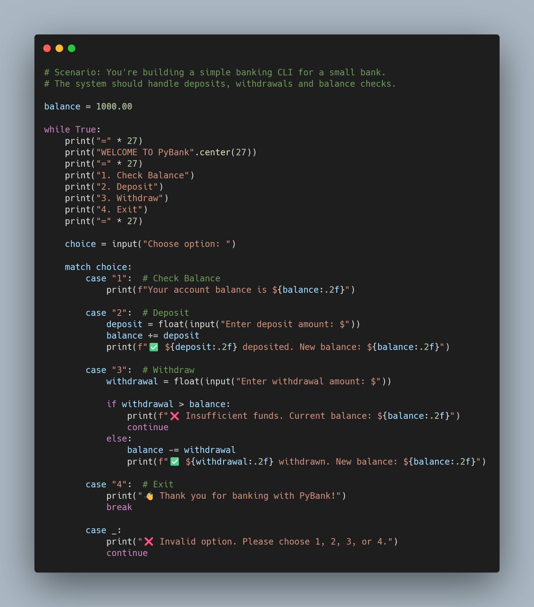 Built a working banking CLI — PyBank.