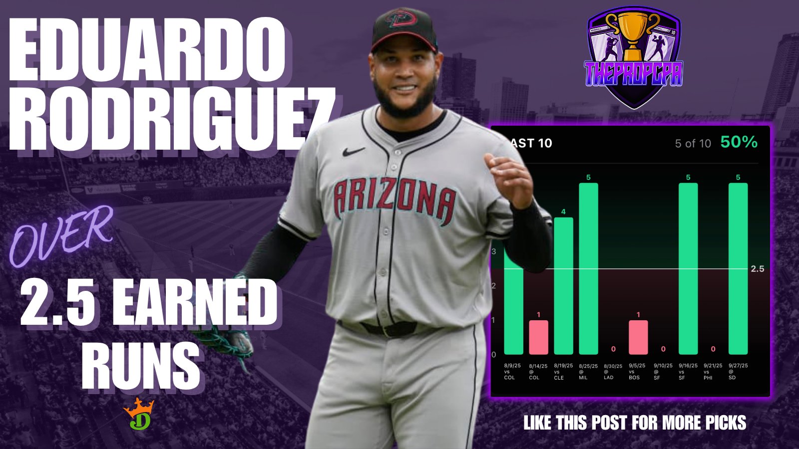 7-0 on pitcher props to start out the 2026 season & I’m absolutely loving the look here on this one.