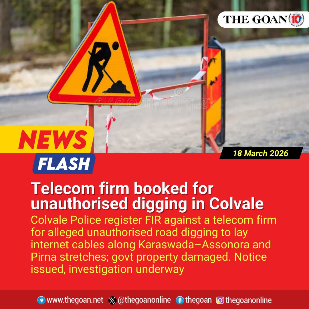 The Goan 🇮🇳 @thegoanonline · Mar 18 Telecom firm booked for unauthorised #digging in #Colvale #Goa #BreakingNews @Goa_Police @spnorthgoa 83