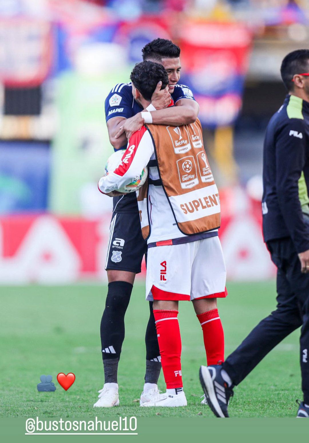 🏴 El abrazo entre Kevin Mantilla y Nahuel Bustos, ambos ex #Talleres, en el duelo que disputaron el #DIM e #IndependienteSaTKIjzzJ