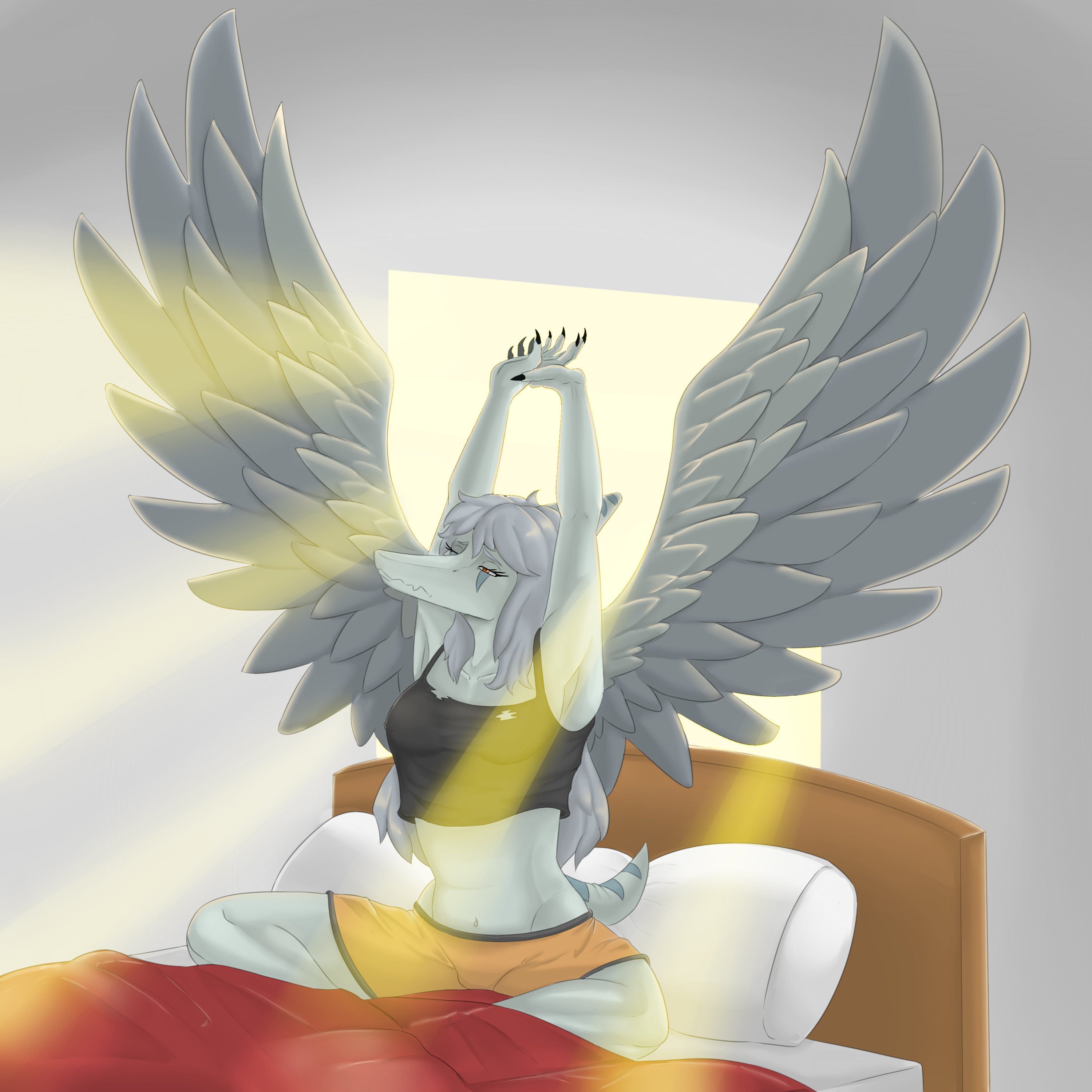 Sorry, i wasn't around for a while i was trying to finish this piece admist the family issues, irl accidents and such but here it is and no less on Fang friday, she was waking up on a really shiny day