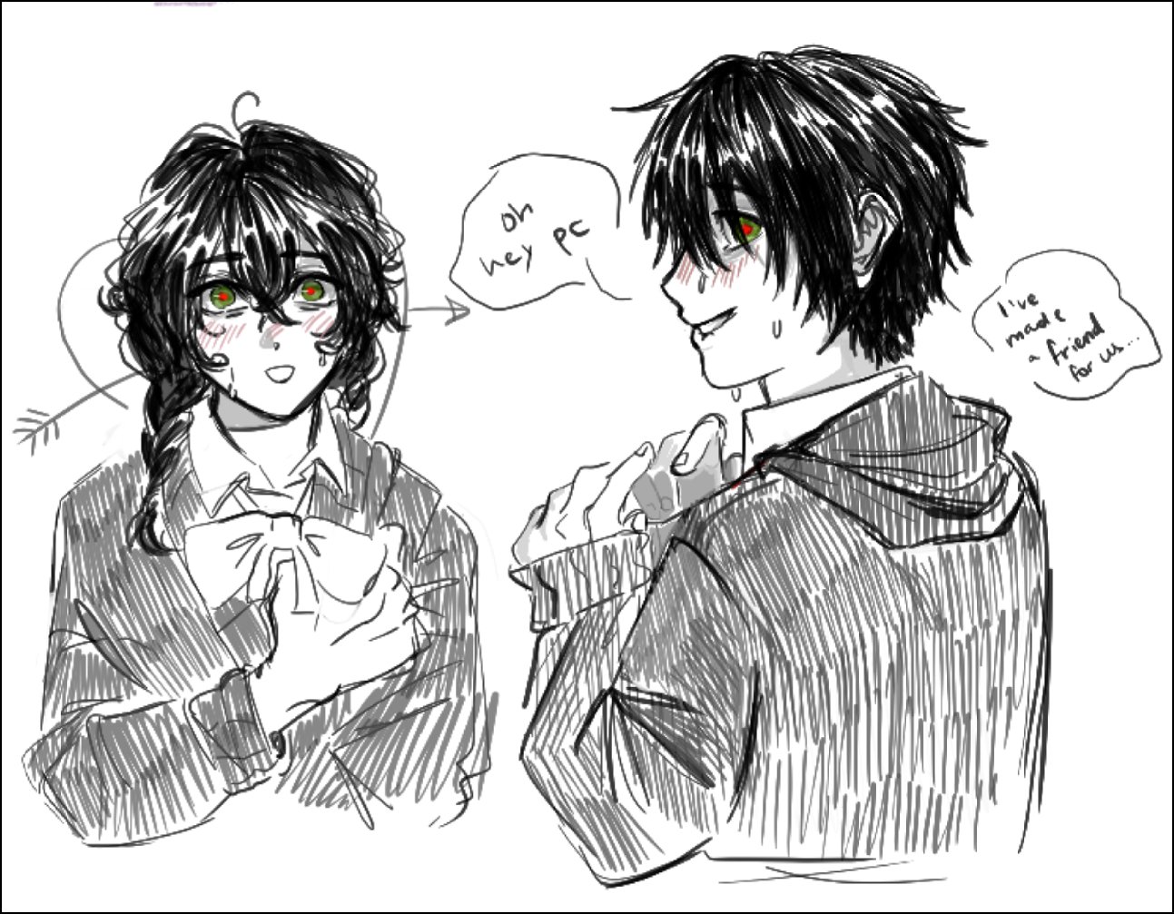 Avery & Jules at a party, but also it's got that "POV you approached the boy without permission" energy to it.