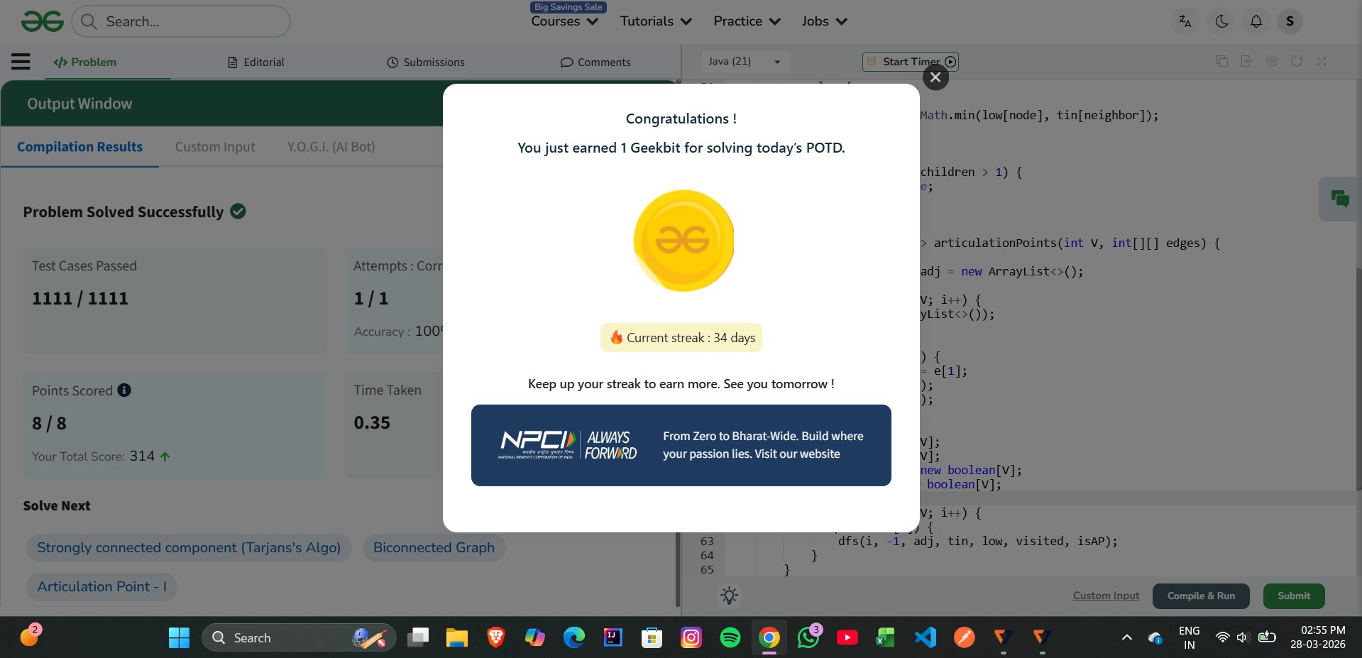 Solved today’s POTD on@geeksforgeeks