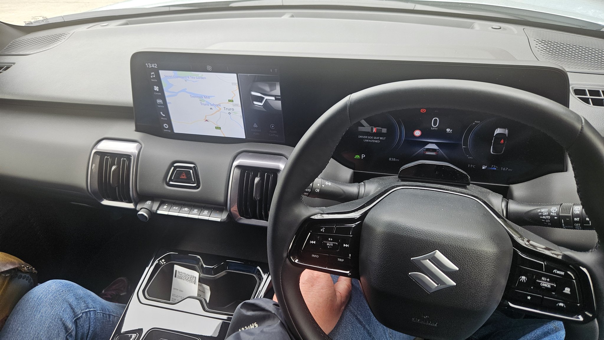Une fois au volant, avec l’ami Christophe, nous n’avions de verbes et d’oreilles que pour évoquer le futur Vitara essence. Voilà ce que c’est de voyager entre séniors accro au thermique. Comme il y a deux mois, avec un autre ex cador du métier où nous avions roulé sous la neige avec un Vitara « AllGrip » donc 4X4, sous les neiges hivernales bretonnes et les pluies d’une Normandie chafouine. L’ex-seigneur de la presse auto, résidait aux « Volets Bleus » un Ephad voisin de la presqu’île de Crozon. Et comme l’ami avait sa dignité, il m’avait demandé à ce que je ne donne pas son vrai prénom dans ma chronique-essai (« Un Songe en Hiver » à lire sur