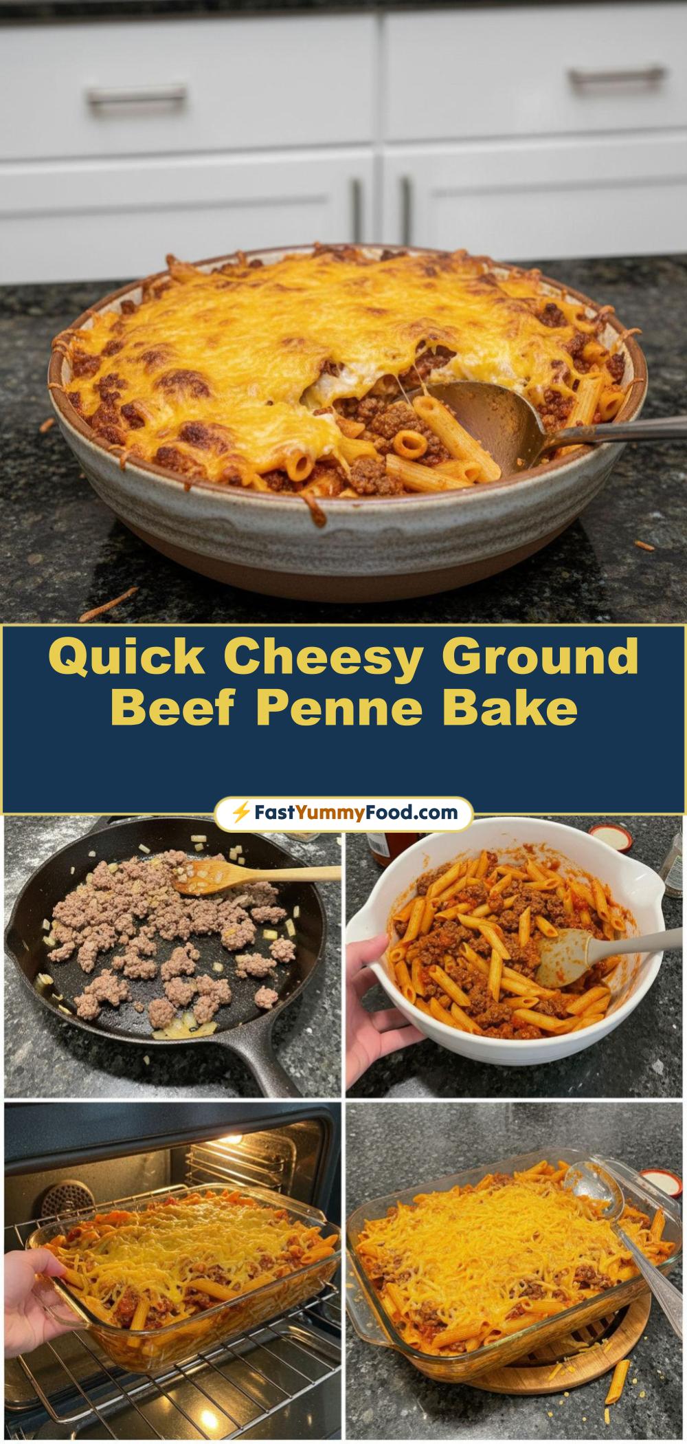 Get ready for a ridiculously easy, cheesy ground beef pasta bake that's ready in a flash.