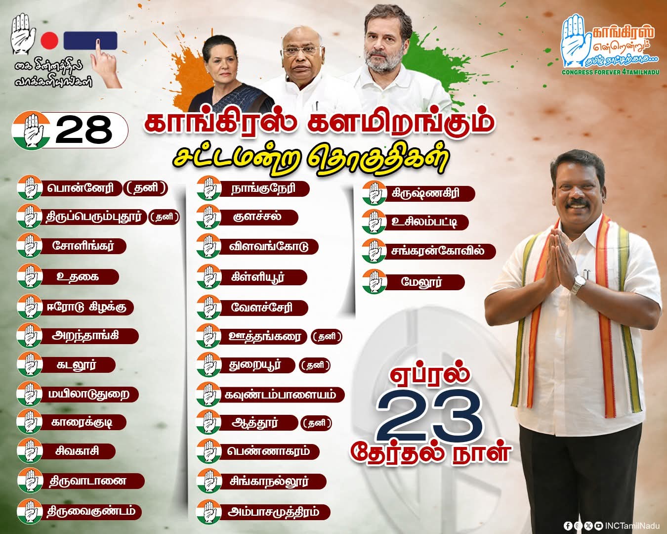 தமிழ்நாடு சட்டப்பேரவைத் தேர்தல் : திமுக கூட்டணியில் காங்கிரஸ், தேமுதிக, விசிக உள்ளிட்ட கூட்டணிக் கட்சிகள் போட்டியிடும் தொகுதிகள் அறிவிக்கப்பட்டுள்ளது. #TNElection2026 #TamilNaduElection2026 #ElectionUpdate @TNDIPRNEWS @ECISVEEP @airnewsalerts
