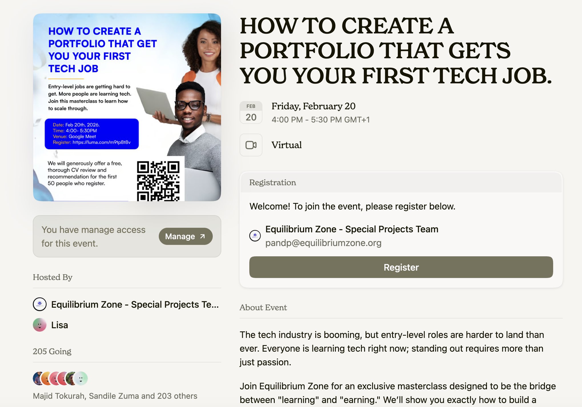 Join in by 4PM and check your email for the reminder link.