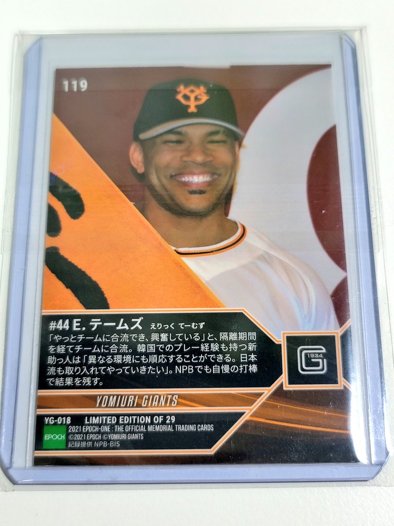 kicks82 @kicks821 · May 23, 2021 来週 BBM読売ボックスを予約注文したけどテームズのカードはもしかしたら今年はこの1枚しか発行されないようか気がする。。。😿 #ericthames #テームズ #読売ジャイアンツ #読売巨人軍 #EPOCHONE #エポックワンx 1 13