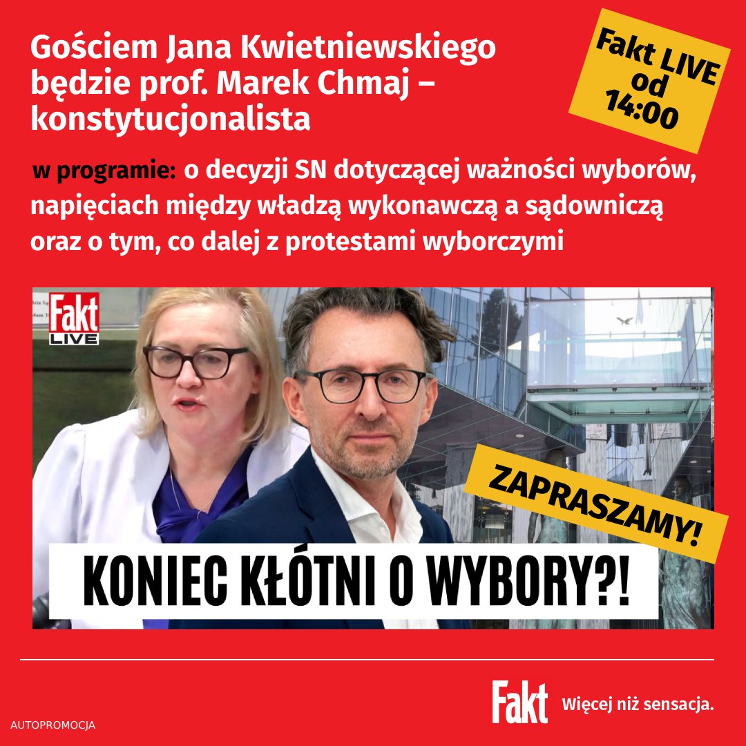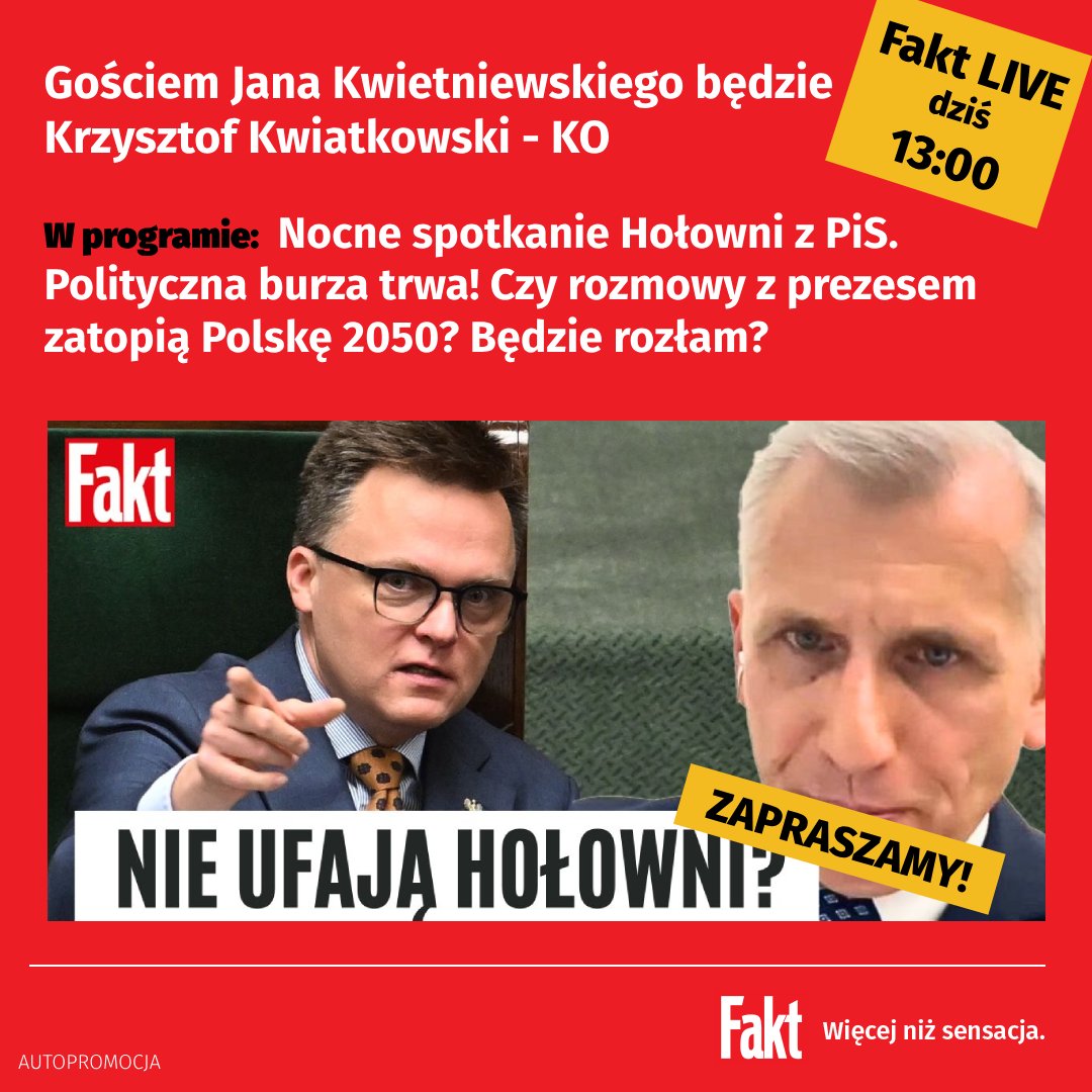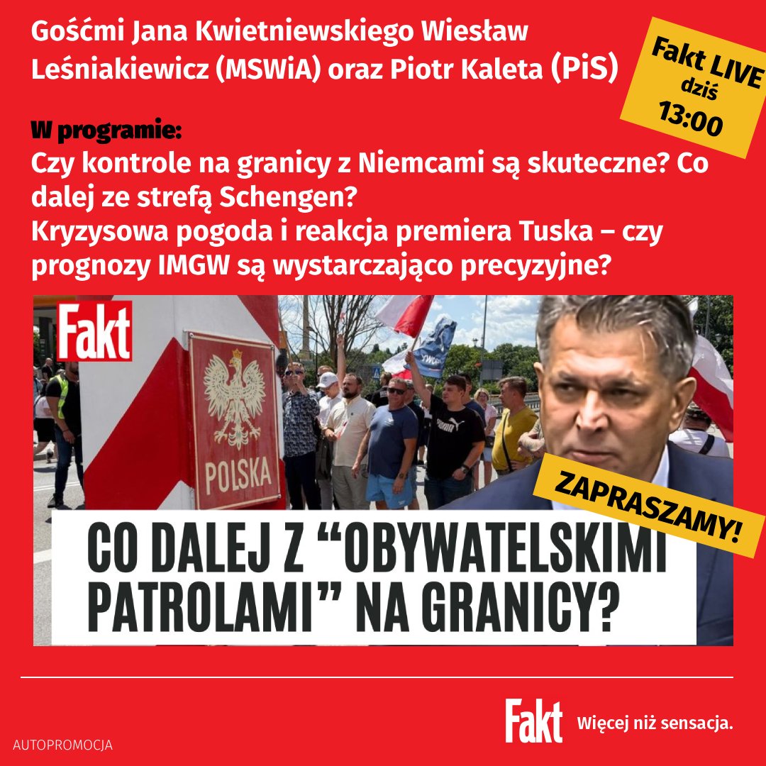 ☝️Już za kilka minut o godz. 1️⃣3️⃣:0️⃣0️⃣ będę gościem red. #JanKwietniewski w audycji „#FaktLIVE”🎙️