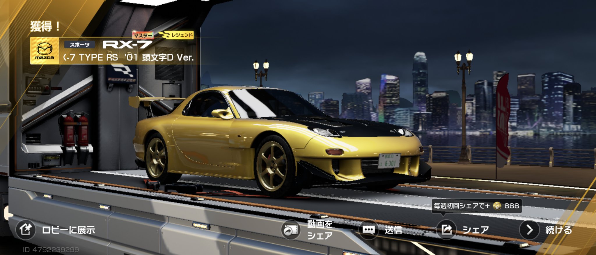 レーマス無料ガチャ券貰ったから消費したくて単発20回くらい回してたらFD来た😁前回FDピックアップやってて入手し損ねたからびっくりした笑 86が…86が欲しいよ〜😫!! #レース #レーマスコボ #FD #RX7 #頭文字G4