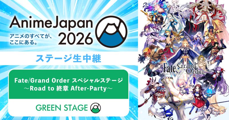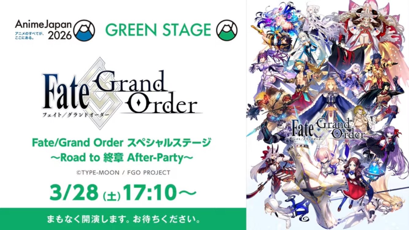 【公式】Fate/Grand Order @fgoproject · 2m 【カルデア広報局より】 ★AnimeJapan 2026 情報★ 「Fate/Grand Order スペシャルステージ ~Road to 終章 After-Party~」ステージ中継を配信中! ニコ生:live.nicovideo.jp/watch/lv350007… ABEMA:abema.tv/channels/anime… YouTube Live:youtu.be/KOIKdBtc66s #FGO x.com/i/broadcasts/1… 3 140 140 6.8K