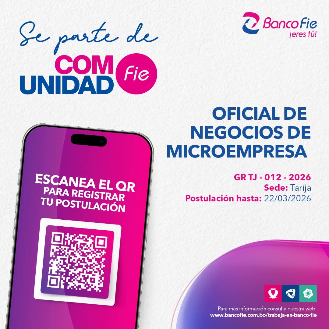 #BANCO #FIE requiere en #Tarija, Oficial de Negocios de Microempresa. Plazo de postulación hasta el 22 de marzo. Interesados postular en el siguiente enlace: