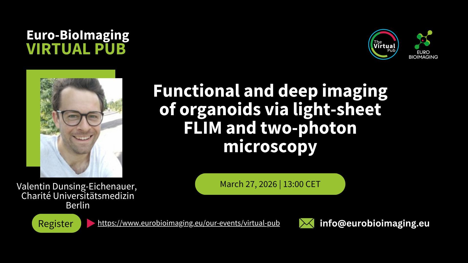 #VirtualPub We welcome Valentin Dunsing-Eichenauer, Charité Universitätsmedizin Berlin, on "Functional & deep imaging of #organoids via light-sheet #FLIM and two-photon microscopy."