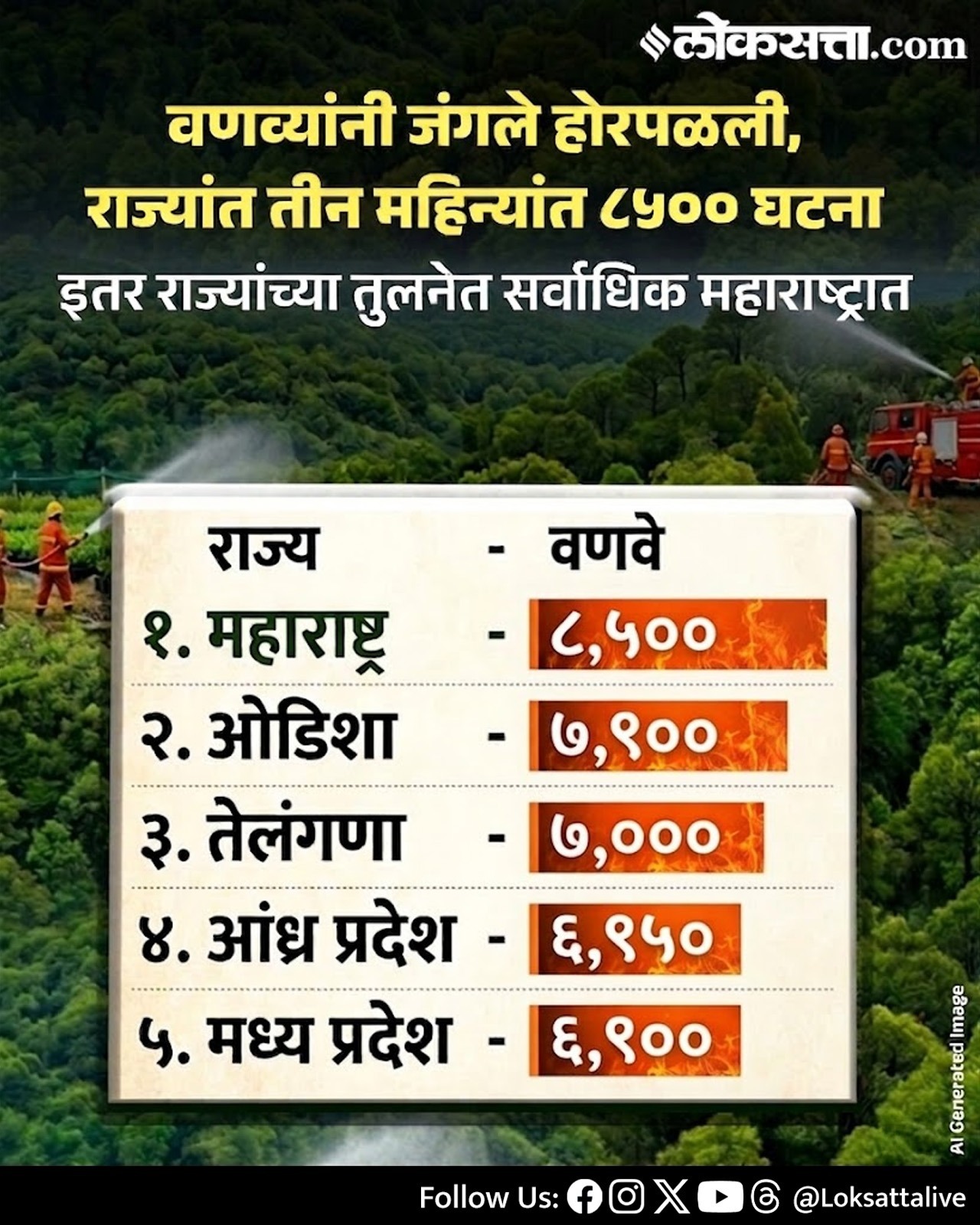वणव्यांनी जंगले होरपळली, राज्यांत तीन महिन्यांत ८५०० घटना इतर राज्यांच्या तुलनेत सर्वाधिक महाराष्ट्रात