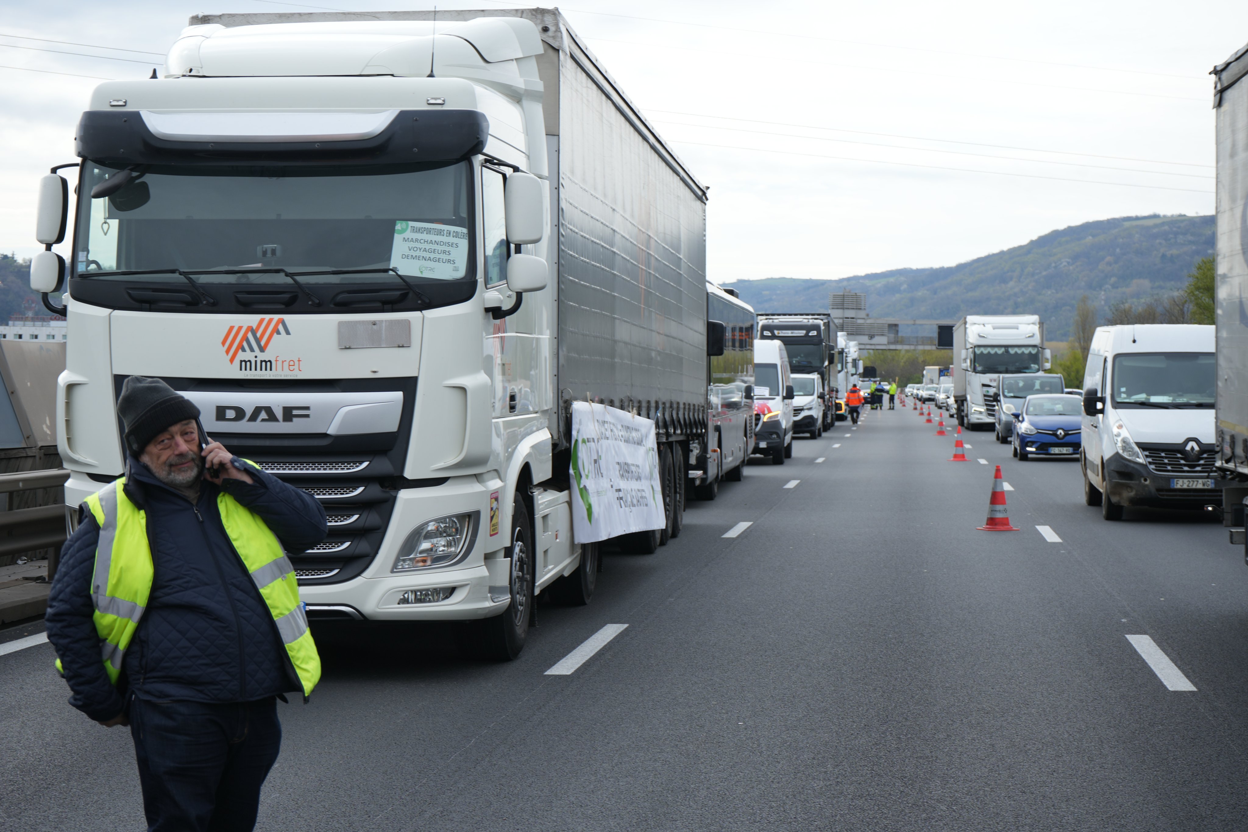 Avrupa Karayolu Taşımacıları Organizasyonu tarafından akaryakıt fiyatlarındaki aşırı artışa tepki olarak düzenlenen eylem kapsamında, kamyon şoförleri Fransa'nın Lyon kentinde trafiği yavaşlatarak lojistik akışını
