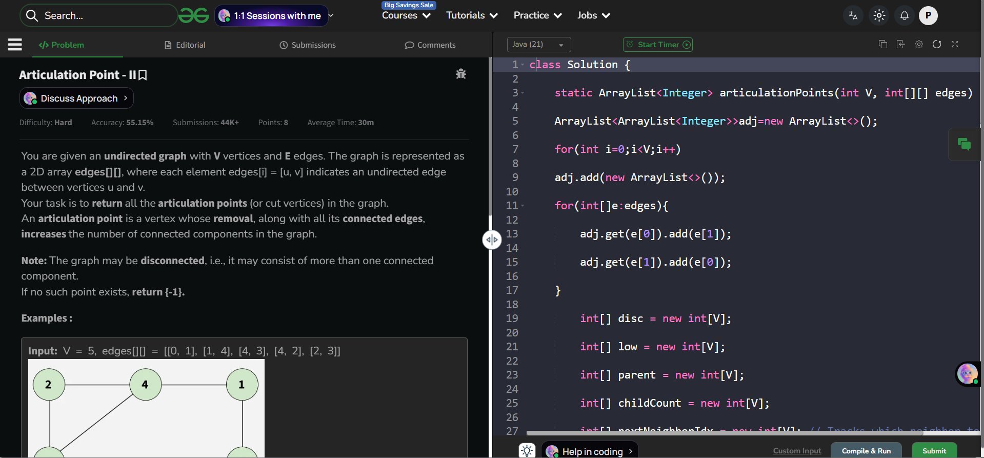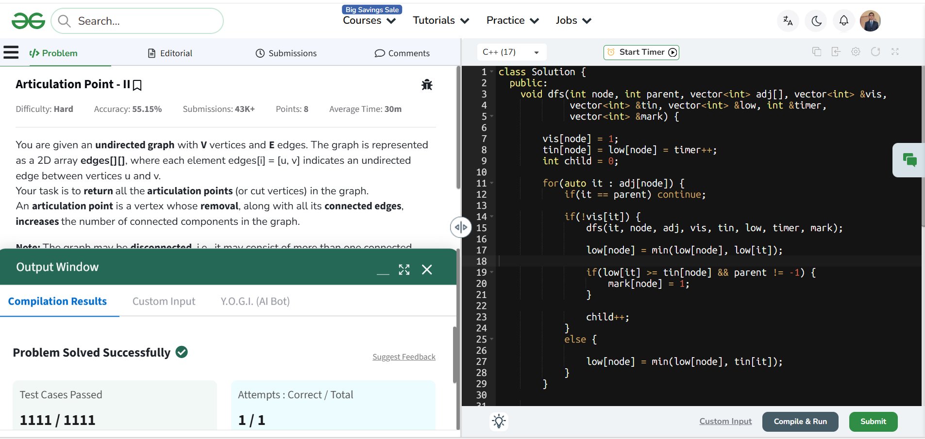 Solved "Articulation Point II" on