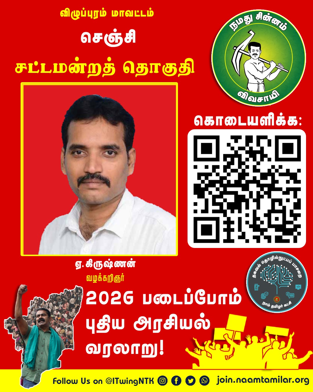 விழுப்புரம் மாவட்டம் செஞ்சி சட்டமன்றத் தொகுதி நாம் தமிழர் கட்சி வேட்பாளர் வழக்கறிஞர் கிருஷ்ணன் அவர்களை ஆதரித்து அண்ணன் செந்தமிழன் சீமான் அவர்கள் வாகனப் பரப்புரை மேற்கொண்டார்.