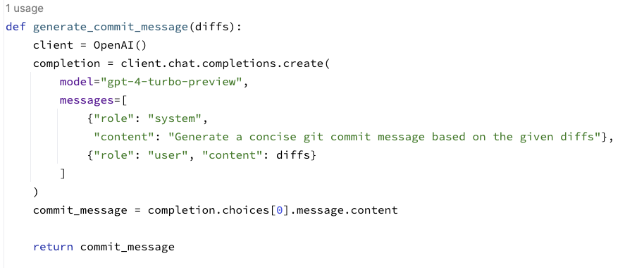 Just created a Python script that simplifies your Git commit process! It uses subprocess and OpenAI's GPT-4 to generate commit messages from diffs. No more commit message headaches! ๐ค๐ป #Python#GitAutomation#CodingLifen7