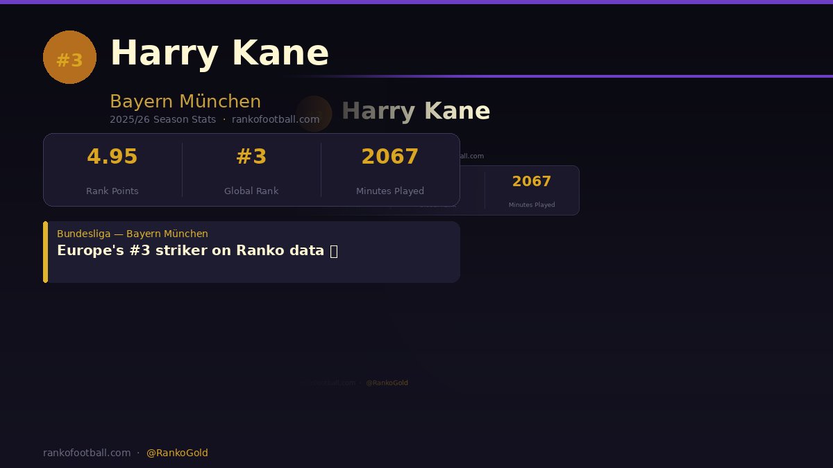 Harry Kane — #3 in Europe on Ranko data. 4.95 pts, 2067 mins for Bayern.