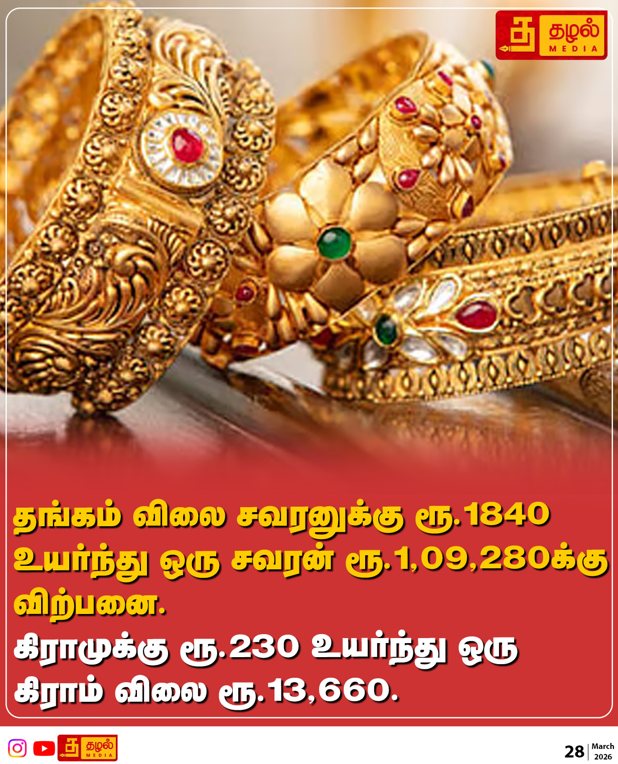 Tazhal Media - தழல் @Tazhal_Media · 8h தங்கம் விலை இன்றும் அதிகரித்தது. #gold #goldprice #hike #ThazalNews #TamilNews #TamilNaduNews #BreakingNews #TamilNewsPaper 16
