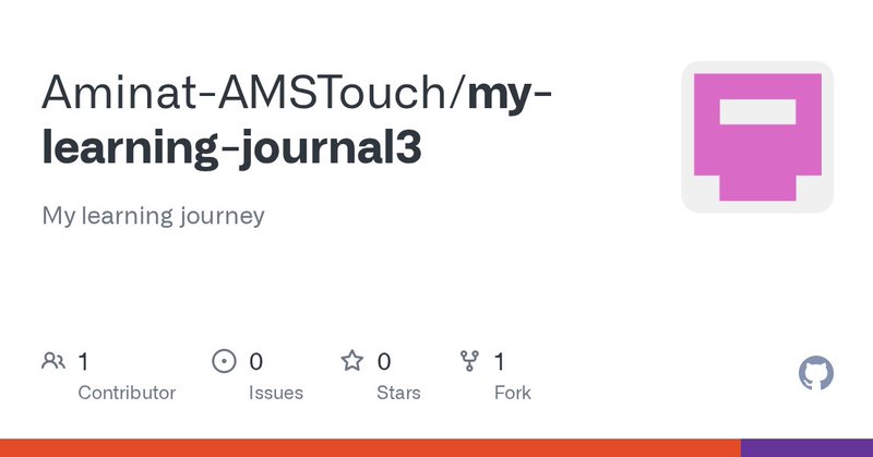 My learning journey. Contribute to Aminat-AMSTouch/my-learning-journal3 development by creating an account on GitHub.