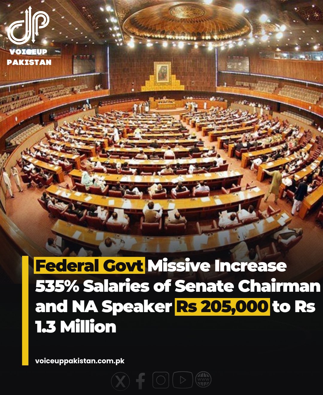 Voiceup Pakistan @VoiceupPakistan · Jun 11, 2025 The government has issued a notification confirming a substantial increase in the salaries of the National Assembly speaker and the Senate chairman. #Federal #Government #Increas #salaries #NAspeaker #ChairmanSenate #massively 16