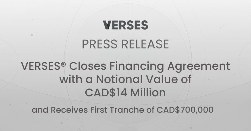 VERSES AI Inc. (CBOE: VERS)(OTCQB: VRSSF) Announces Closing of Private Placement Offering of Units