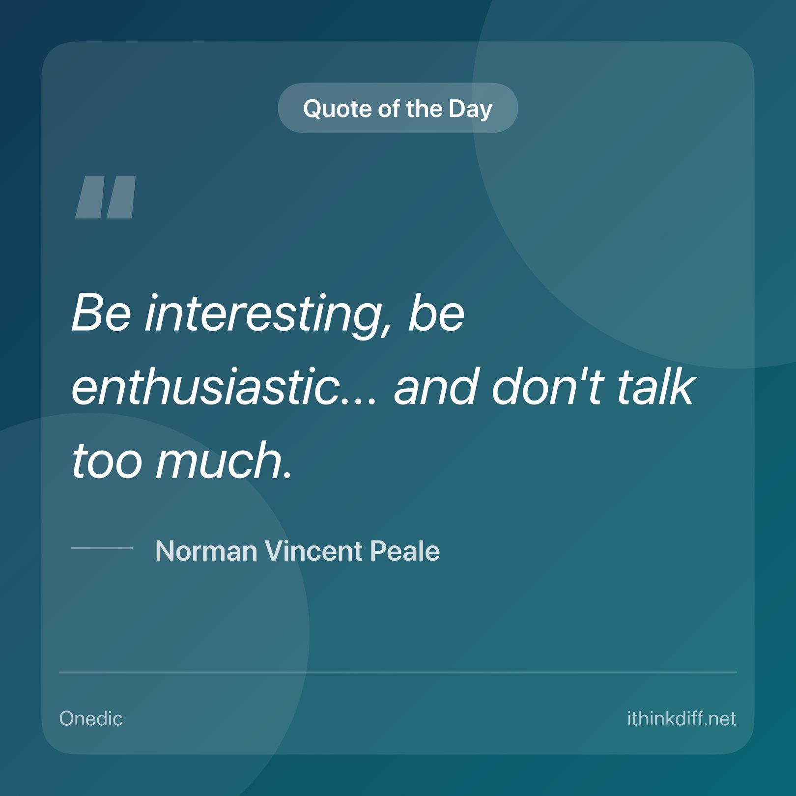 "Be interesting, be enthusiastic... and don't talk too much." -Norman Vincent Peale