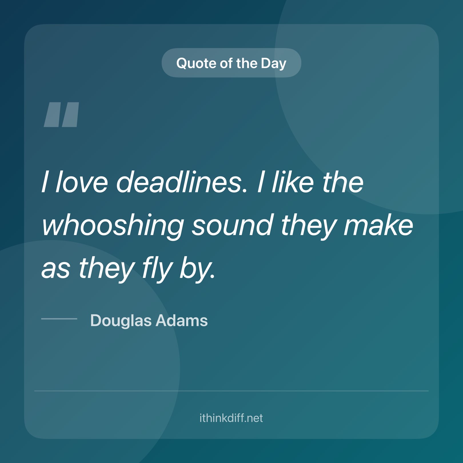 "I love deadlines. I like the whooshing sound they make as they fly by." -Douglas Adams