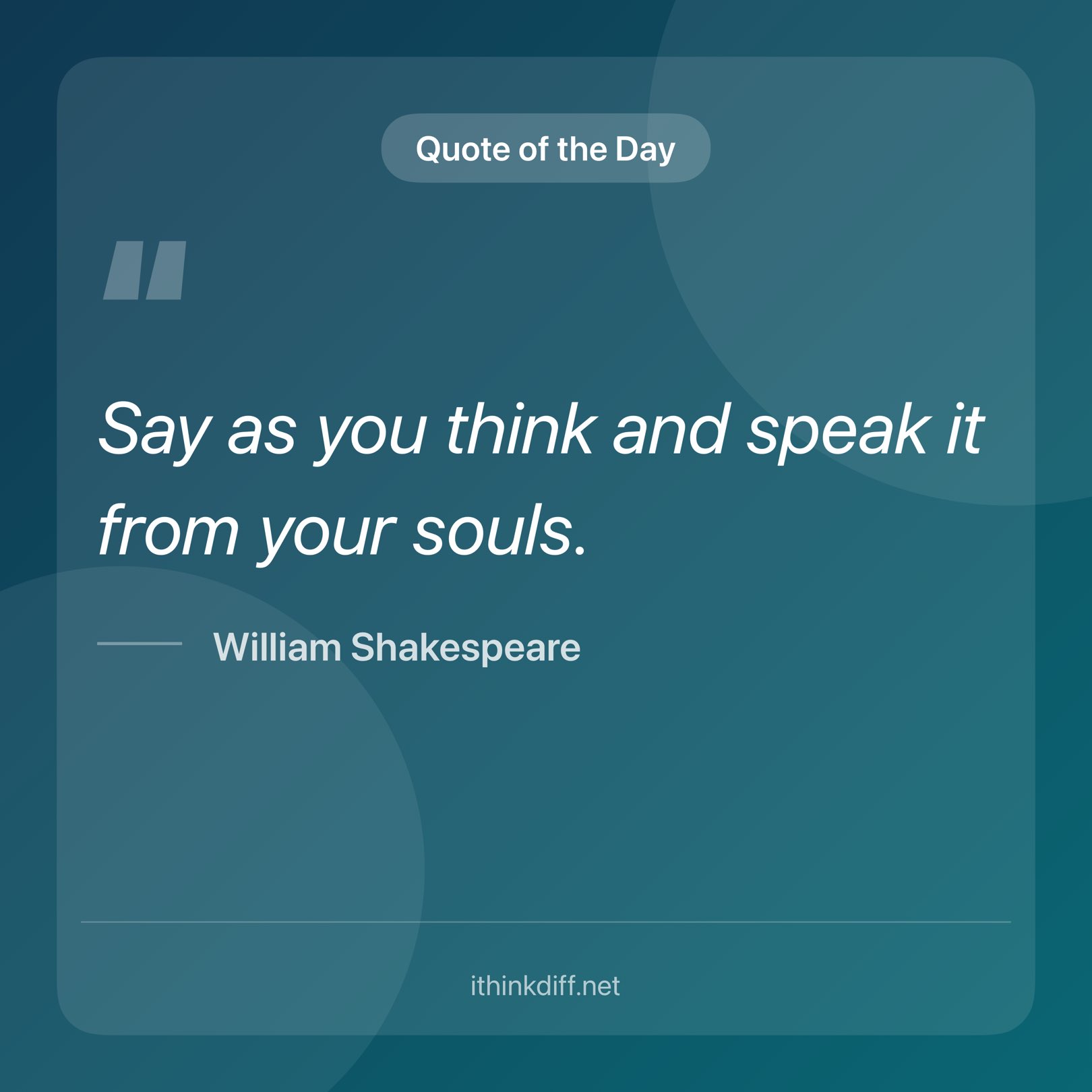 "Say as you think and speak it from your souls." -William Shakespeare