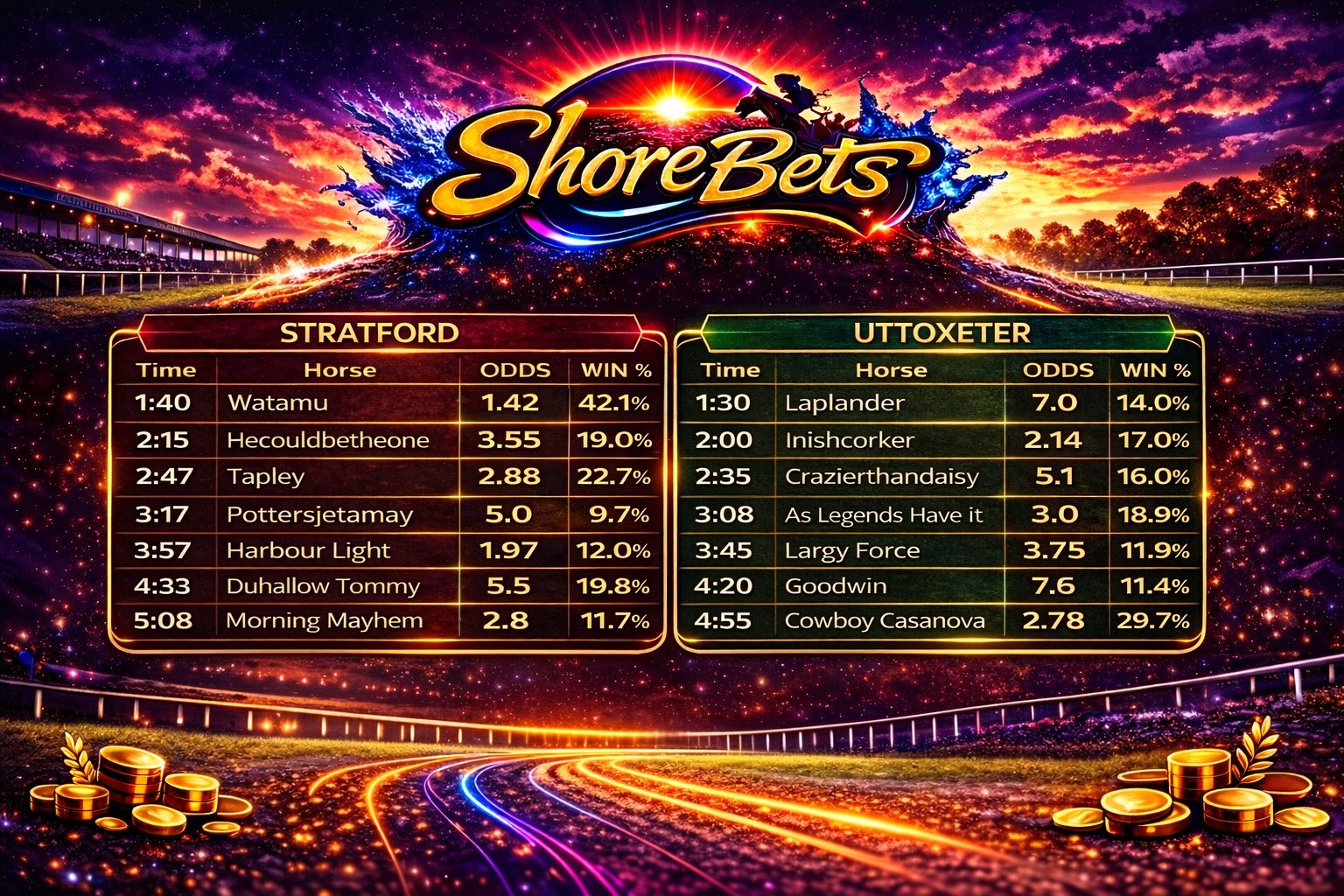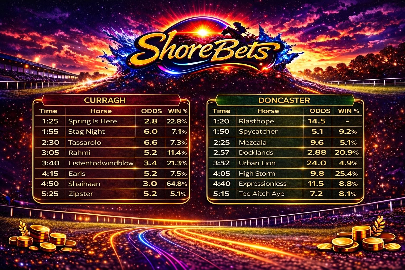 Lots of racing please keep stakes reasonable and gamble responsibly 🫡